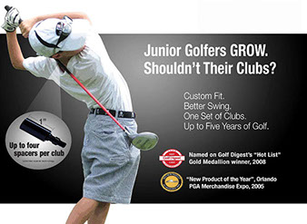 The AL2000 is sized for children that are 48.5” to 60” in height. Available in a red bag (shown above) or lime green the Starter Set contains a 2000-series 17 degree fairway wood, 7-iron, pitching wedge, and putter. Additional clubs available.